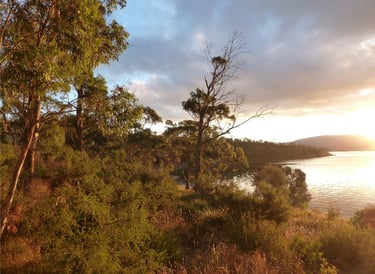 In April 2005, I was on holiday and canoeing along an uninhabited stretch of north Bruny Island shoreline following a heron when I came around a headland and saw a humble wooden off-grid house overlooking a stunning bay. A hand-made For Sale sign was nailed to a tree. The place spoke to me, and as my son had married and I just had sold our English family home, I impulsively found the owner of 'Blackstone' and shook hands on the purchase which included 55 acres of land and three sheds that I turned into art studios. Living remotely and reclusively immersed in sublime natural beauty with remarkable wildlife brought dramatic changes to my life and artwork. I soon was making more sculpture than paintings and writing books of illustrated poetry. I lived simply, relied solely on wind and solar power that I installed, collected rainwater from the roof, had composting toilets, and made a vegetable garden that wildlife adored. Most of the 55 acres were over-grazed paddocks so I began an ecological restoration project, and with the help of volunteers planted over 4000 native trees and understory plants. I lost Blackstone in 2018 in an unnecessarily cruel divorce. I had fulfilled my ambition to create a wildlife sanctuary and restore the land, but the grief of losing a place I loved still lingers. My heart will always be there.