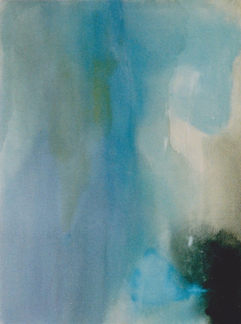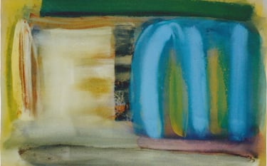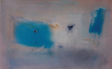 Row 9: Pale Blue, acrylic on canvas, 61 x 95 cm. In Evocation, Cerulean Blue, acrylic on canvas, 122 x 92 cm (SOLD).