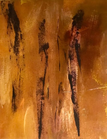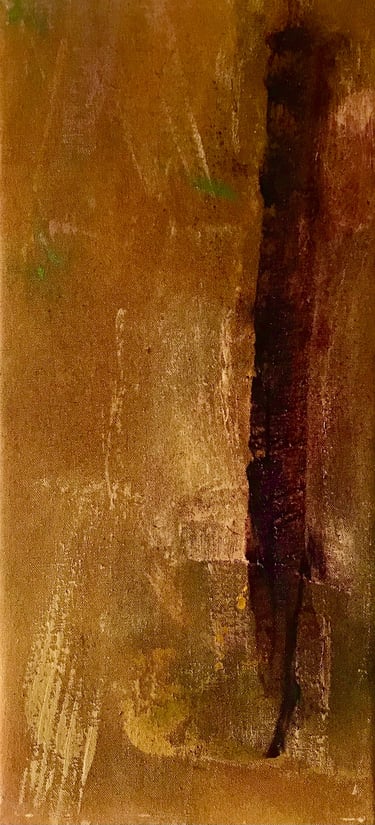 Row 3: Japa, acrylic on canvas, 120 x 90 cm (SOLD). Gold, Green & Mauve, acrylic on canvas, 95 x 55 cm.
