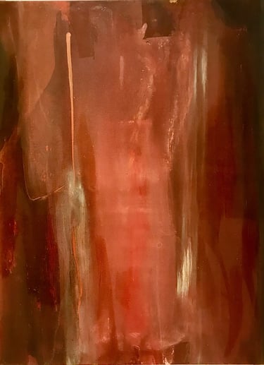 Row 7: Cinnabar, acrylic on canvas, 122 x 92 cm. In Darkness, Evocation, acrylic on canvas, 122 x 92 cm.