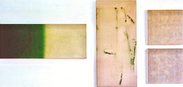Row 5: Heat dyptch. The Stillness of Fall (SOLD). The Strata of Memory (SOLD).