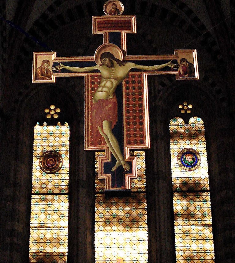 Photographs of Cimabue crucifix and early Renaissance Madonna taken by Victoria King in Italy.