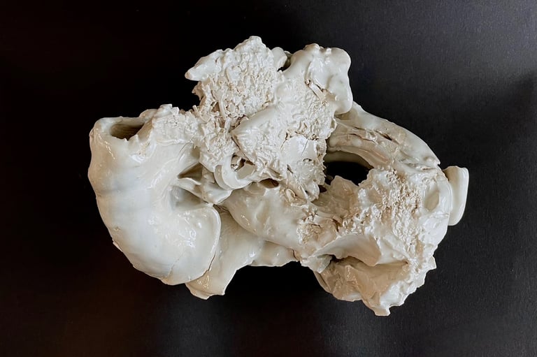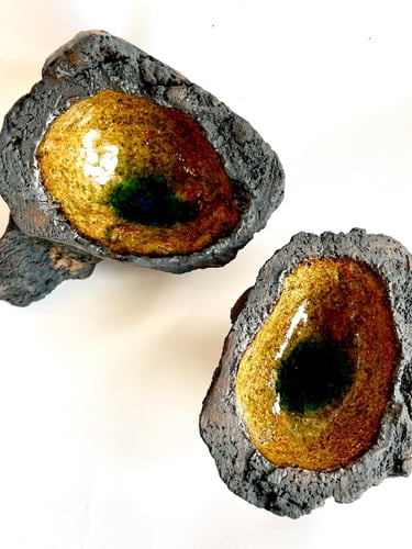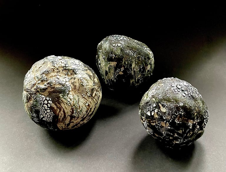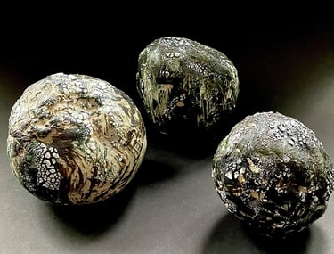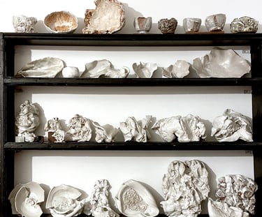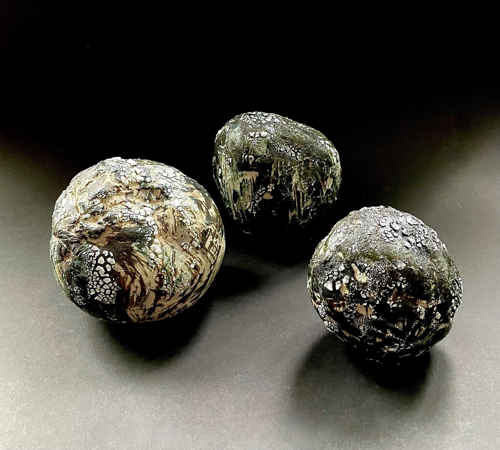 My work honours personal and collective trauma, brokenness, fragility, and displacement. Their surfaces carry a history of their making while their interiors hold emotions, memories, hopes, and intentions. The uncanny organic forms bridge the intersection of culture and nature. Embracing chance, failure, and a loss of control, they bear witness to our sublime, vulnerable natural world.