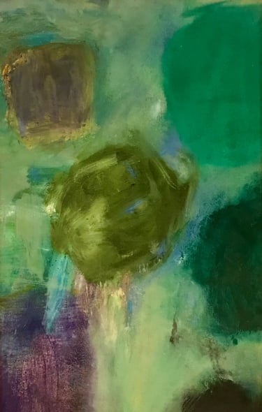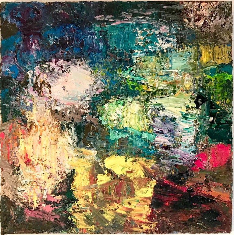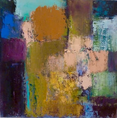 Row 12: Blossom II, 40 x 40 cm (SOLD). Rain Wash'd Dawn, 61 x 61 cm.