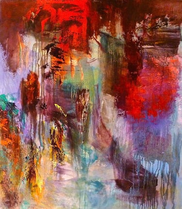 Row 13: Floating World, Carmine, 80 x 70 cm. Tremulous Heart, 80 x 70 cm.