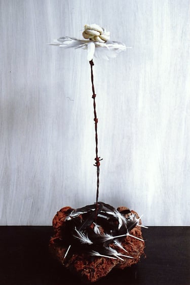 Row 4: It Hurts to Turn the Pages, a book I made from thistles and barb wire.