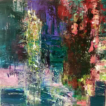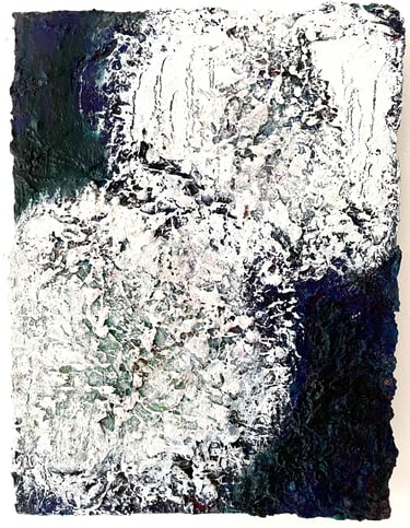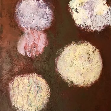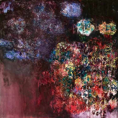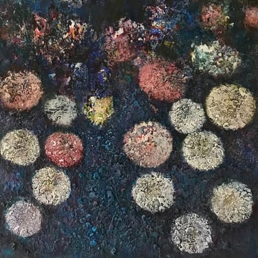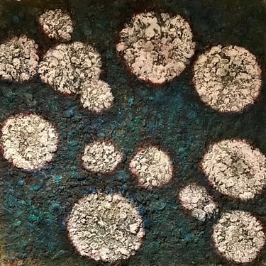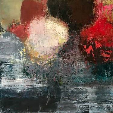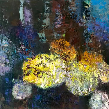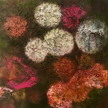 Row 1: Droplets of Dew, 50 x 50 cm. Floating World II, 50 x 50 cm (SOLD). Peony and Iris, 30 x 30 cm. Scattered Petals, 70 x 70 cm.