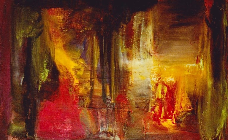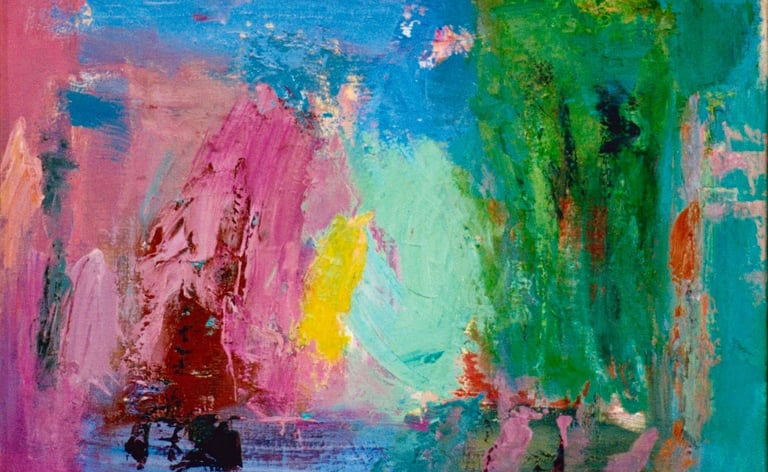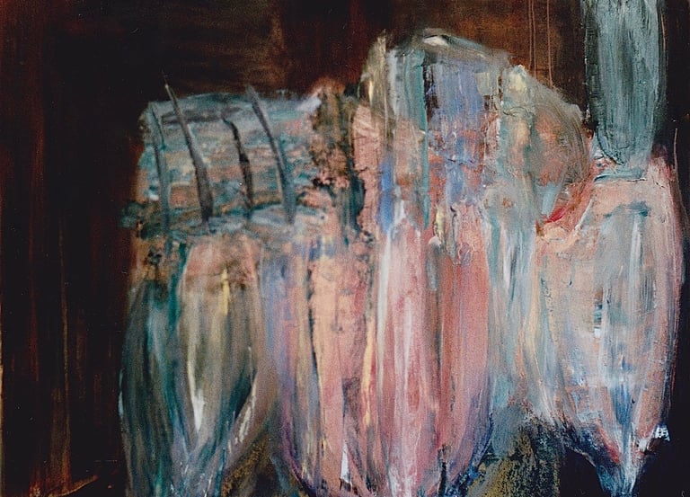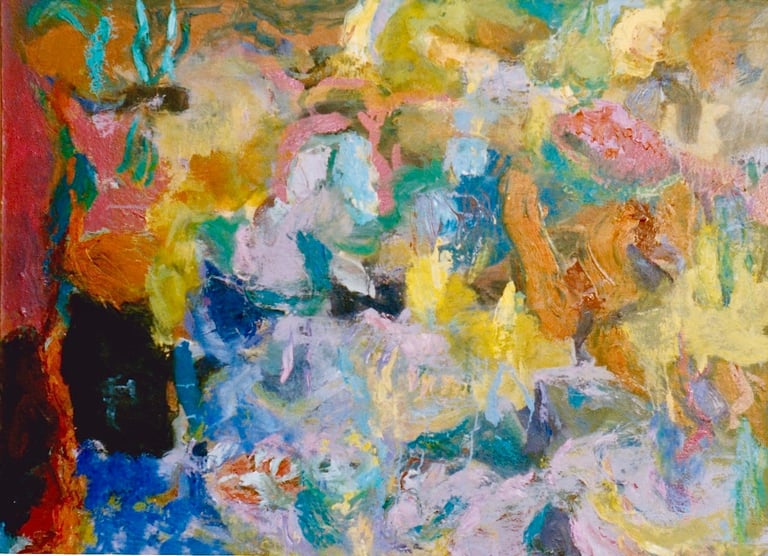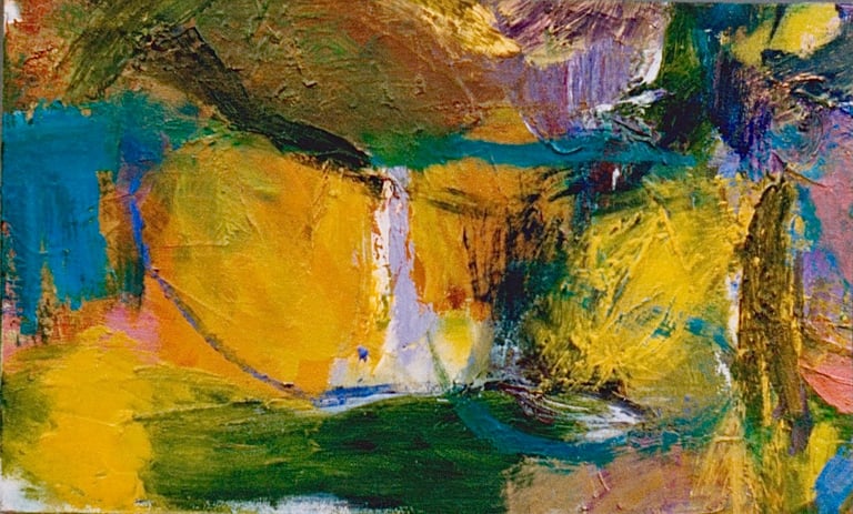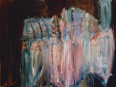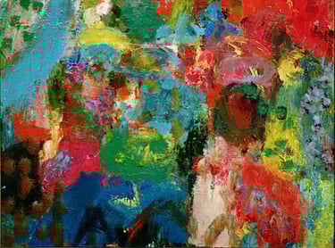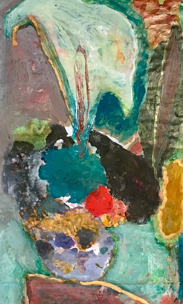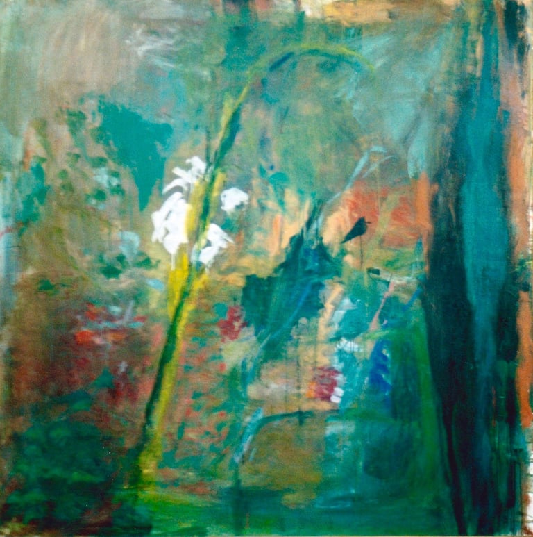 Row 11: Dark Beginnings, Luminous Ends. First Flowering, acrylic on canvas (SOLD).