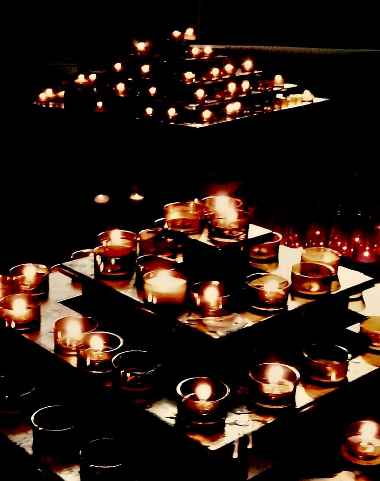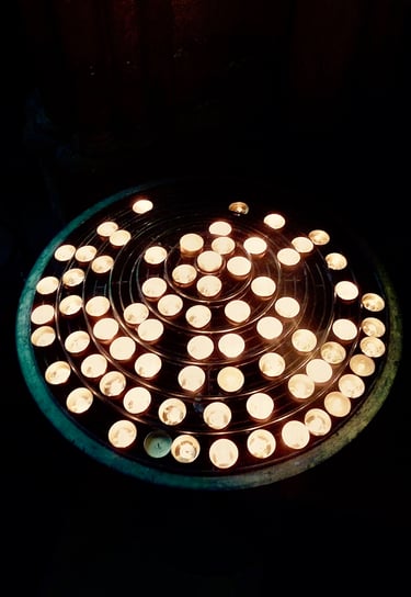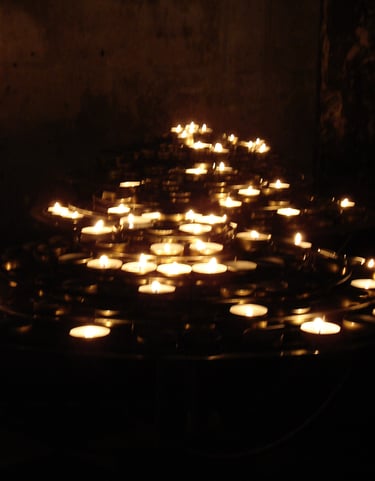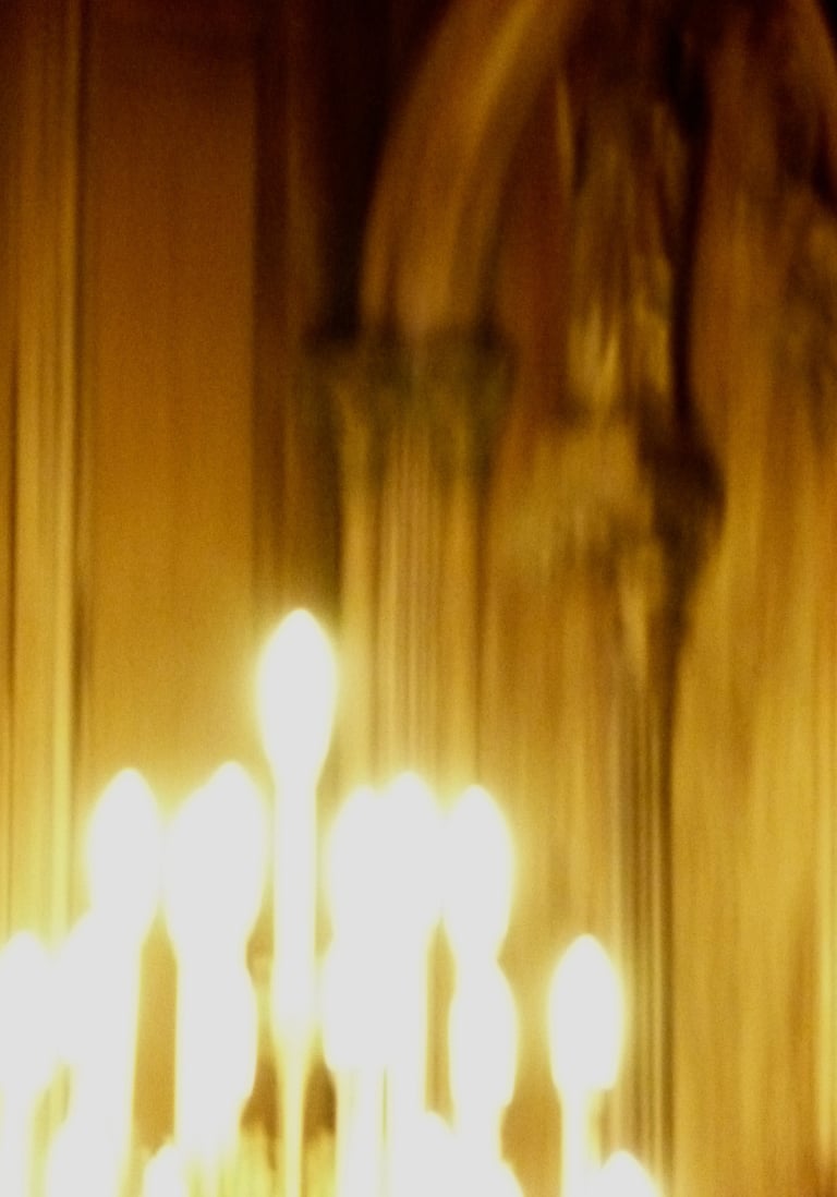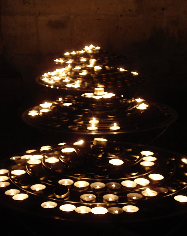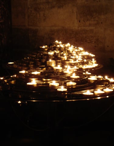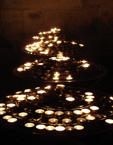 Photographs taken inside French and Italian churches.
