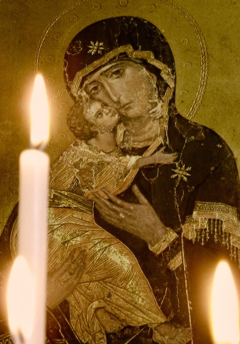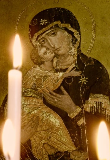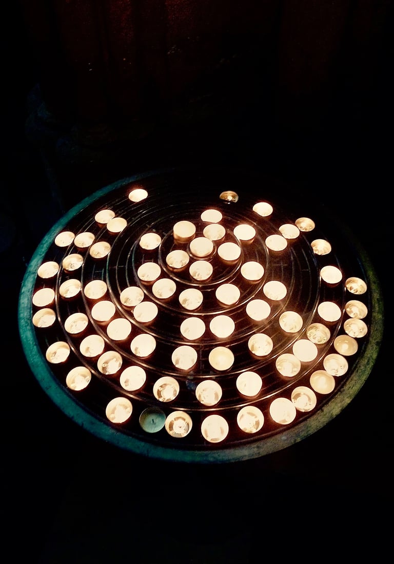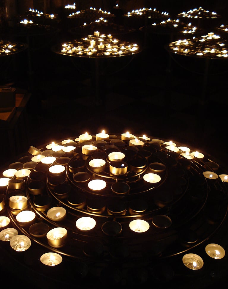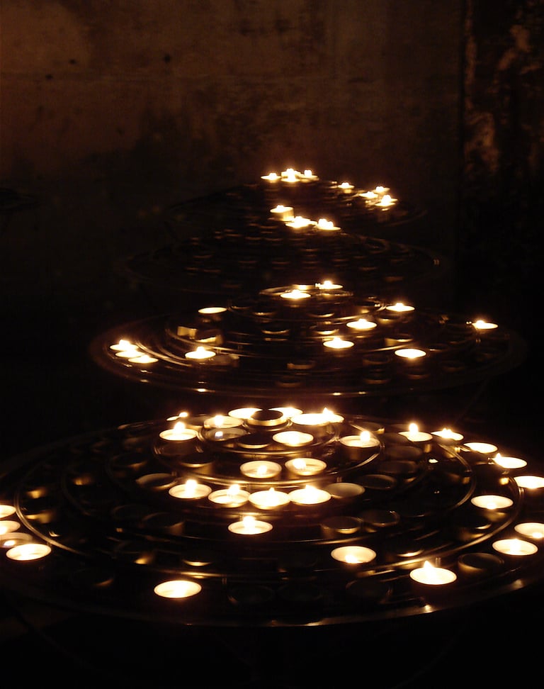 Photographs taken inside French and Italian churches.