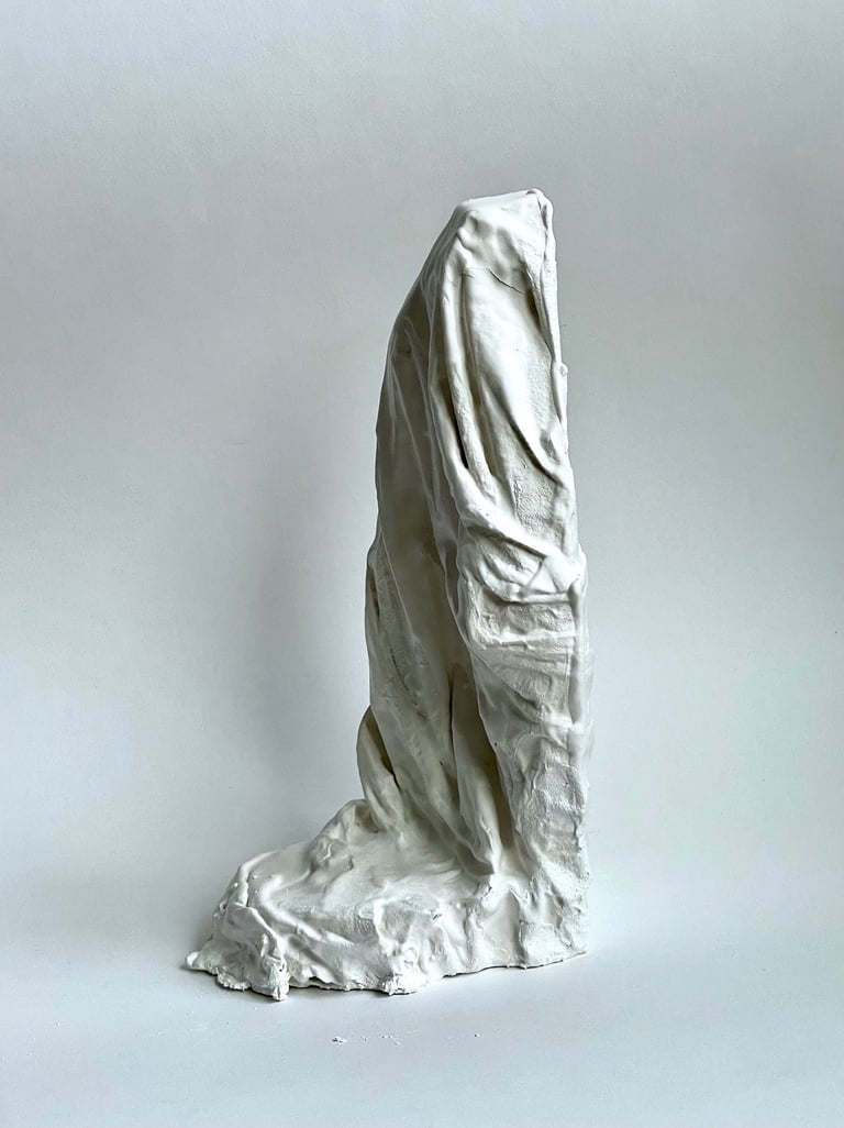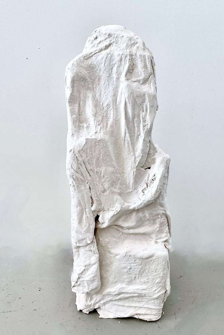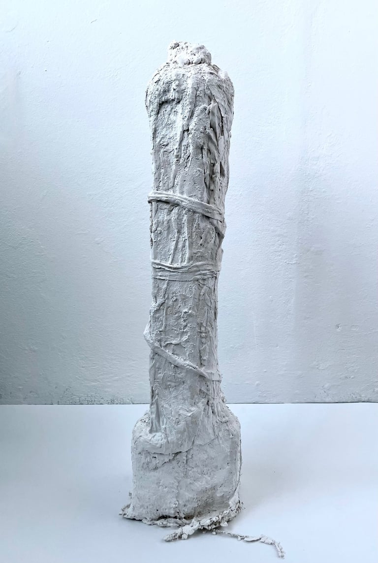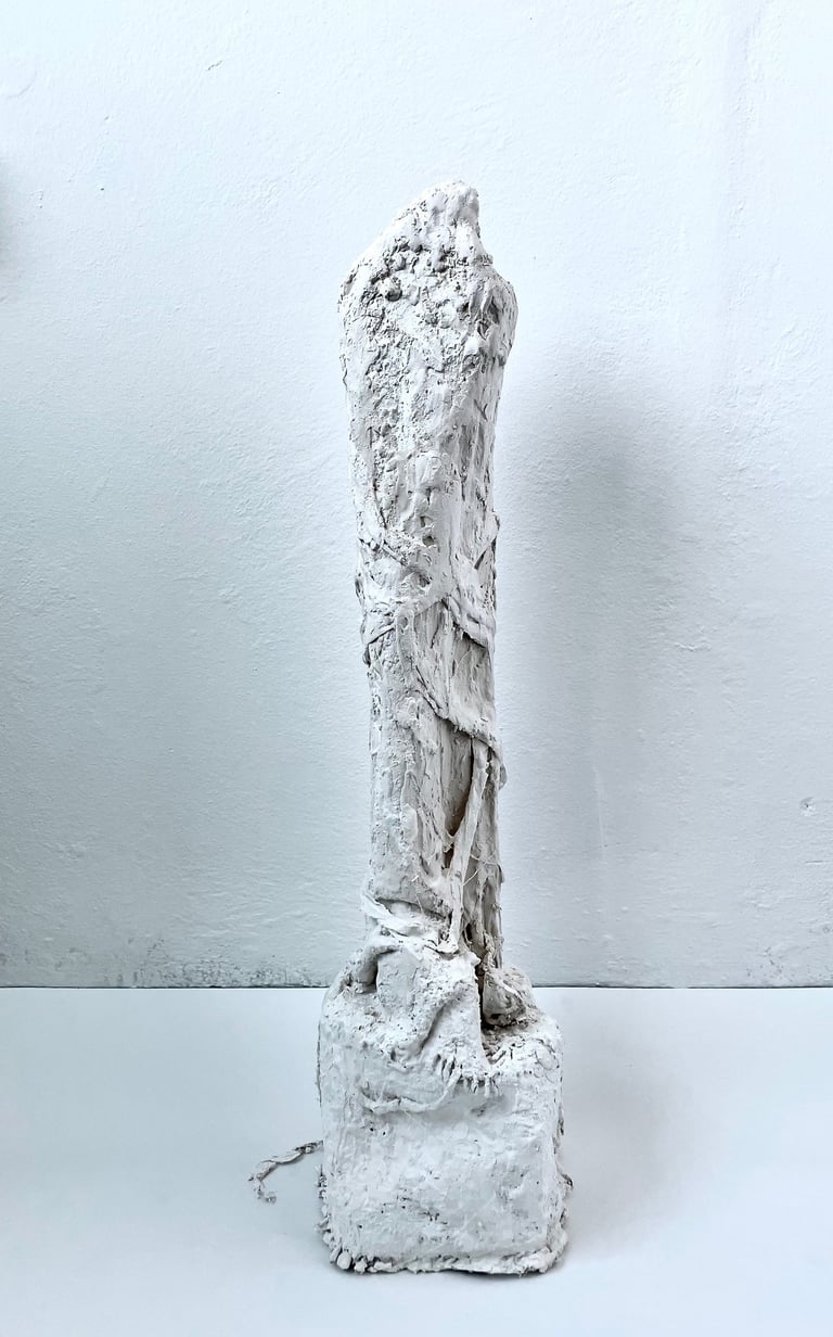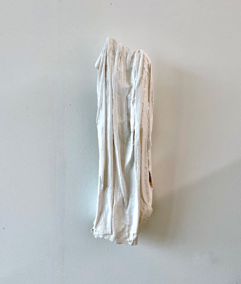 Plaster-covered discarded fabric over recycled and found materials. 2023 - 2025.