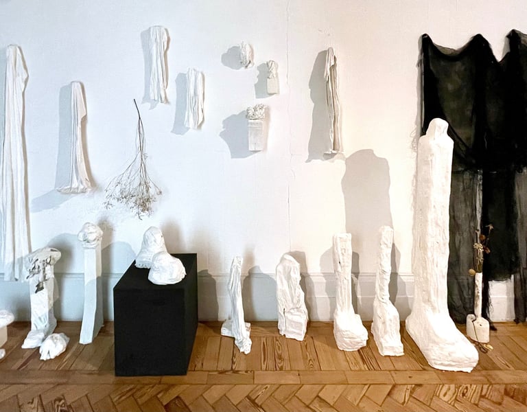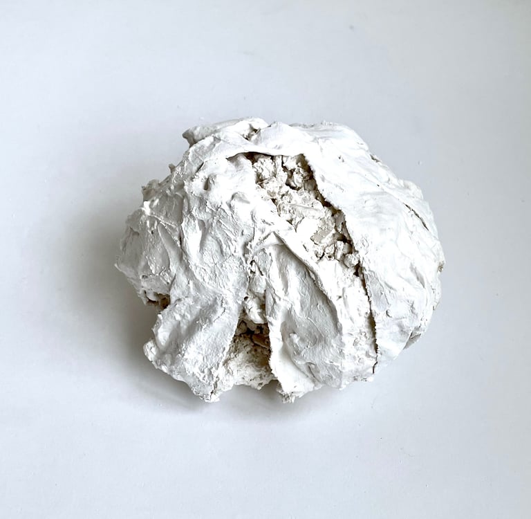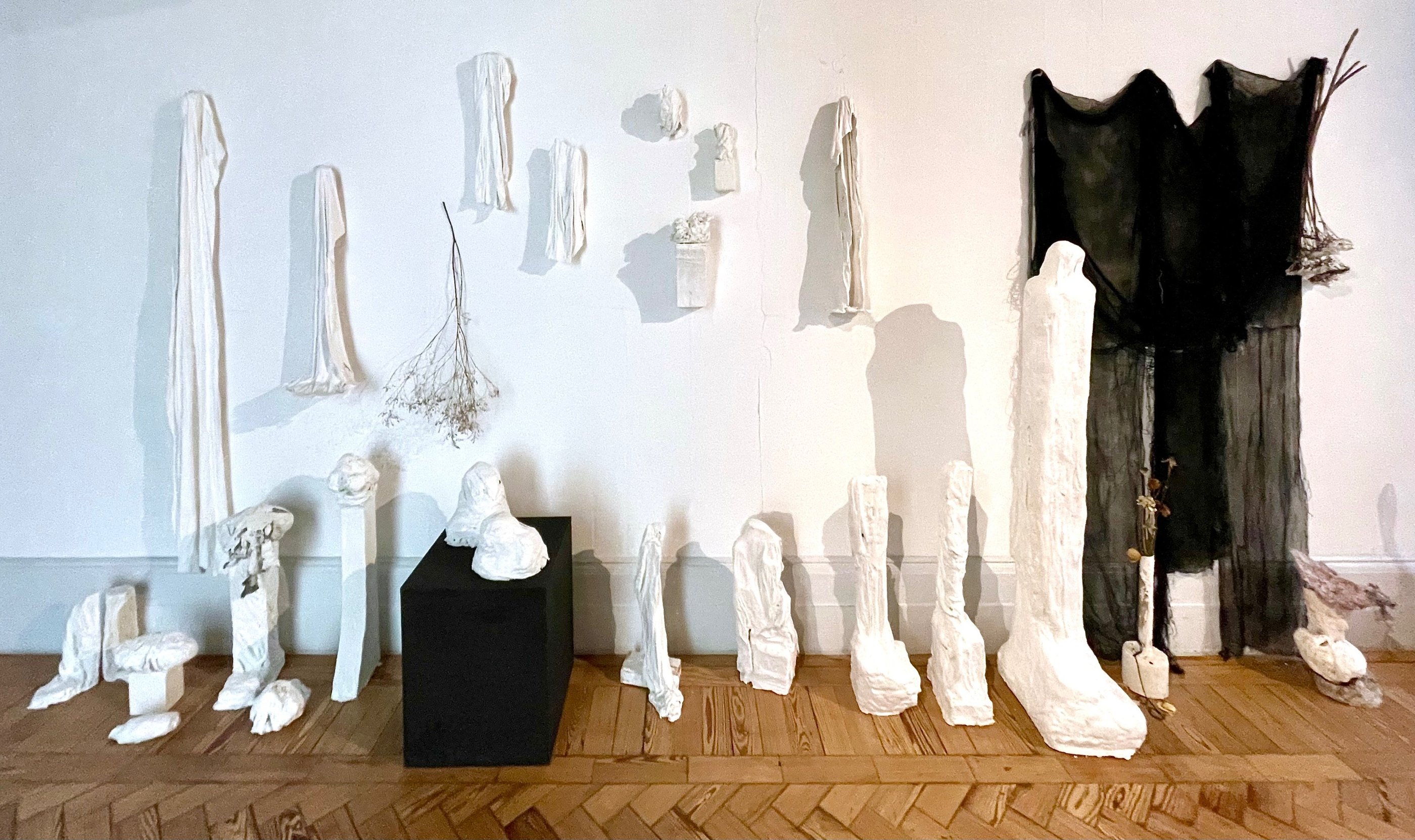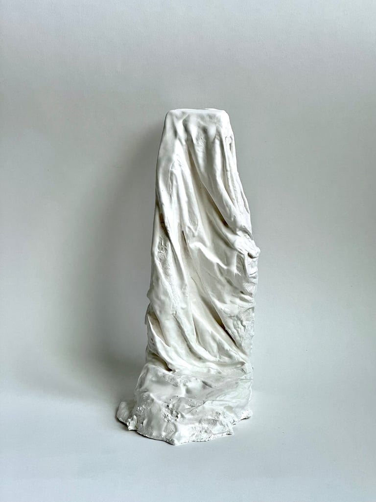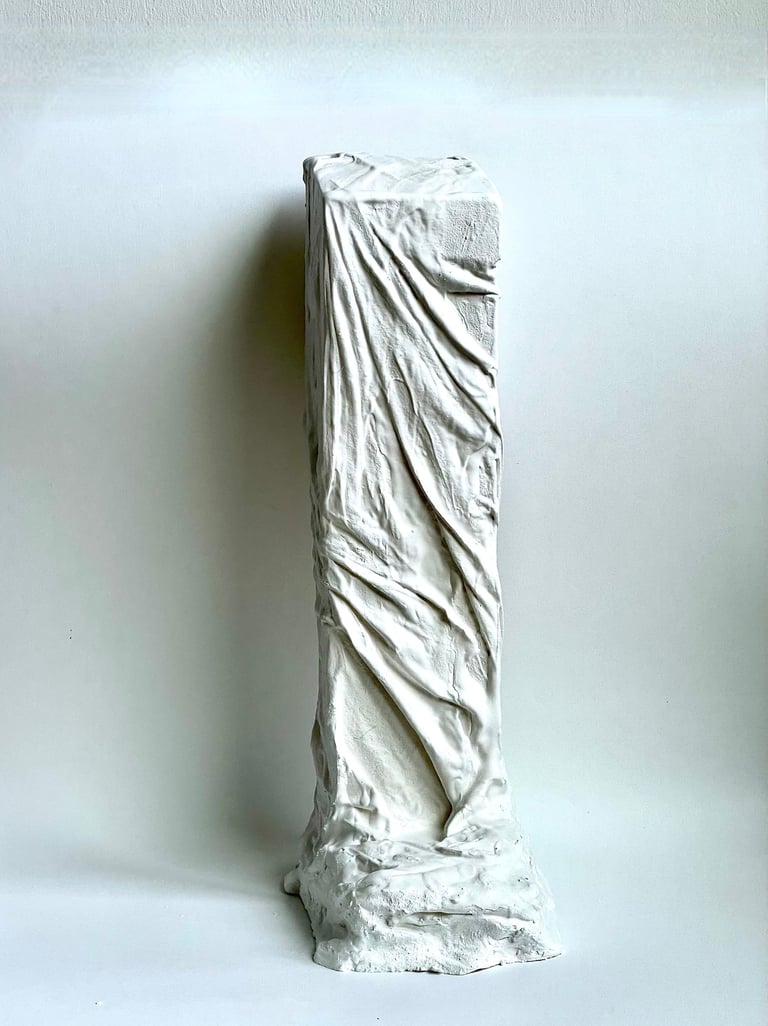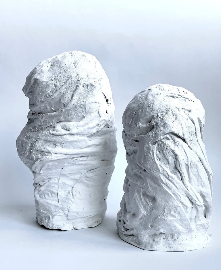Plaster-covered discarded fabric over recycled and found materials. 2023 - 2025.