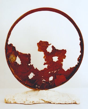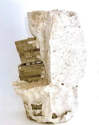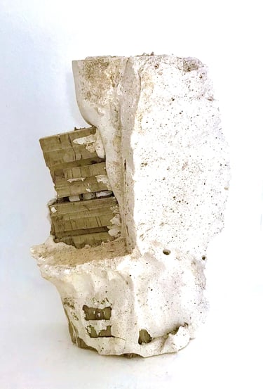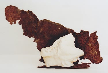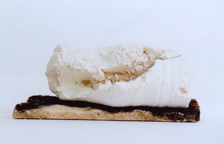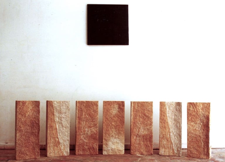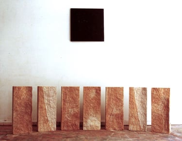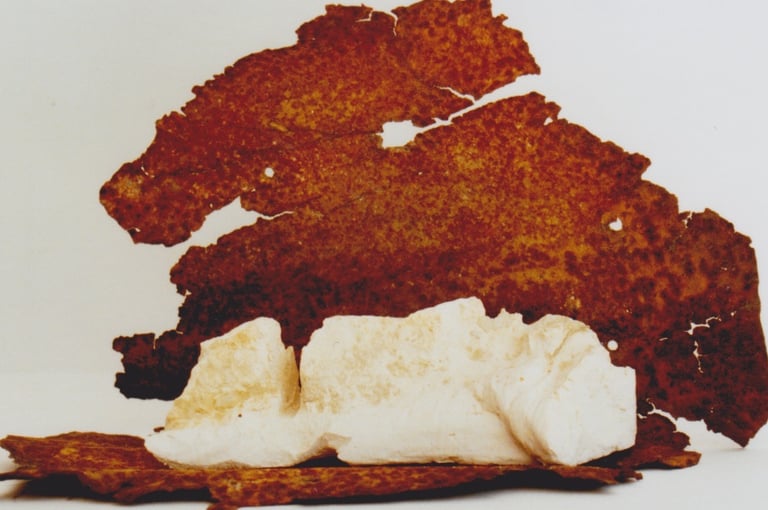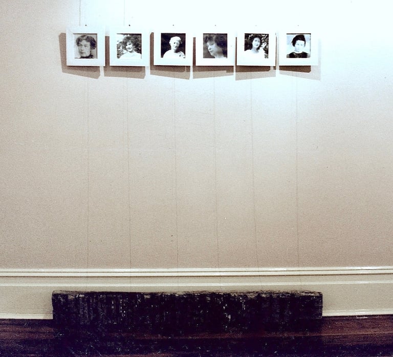 Ancestral Inheritances, an installation of photographs of six generations of women in my family attached by wires to a wooden sleeper that I found at the quarry. The wood had multiple slashes where the diamond-blade saw used for cutting sandstone had stopped. It reflected my desire to stop trans-generational trauma.