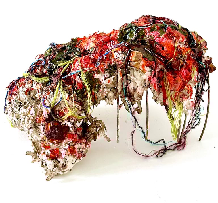 Made with recycled and discarded materials and found objects. 2023-2025.