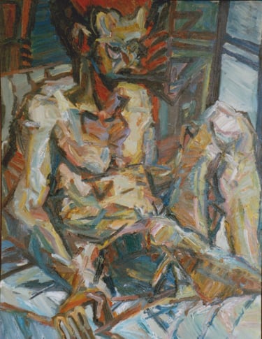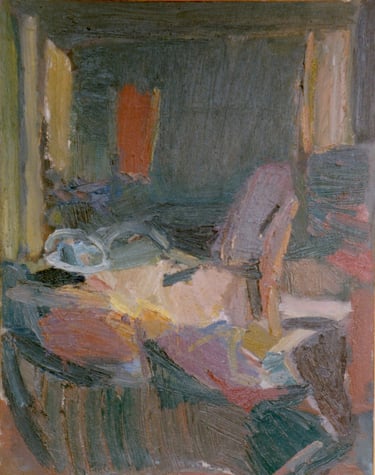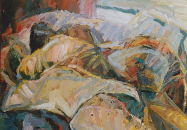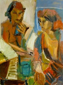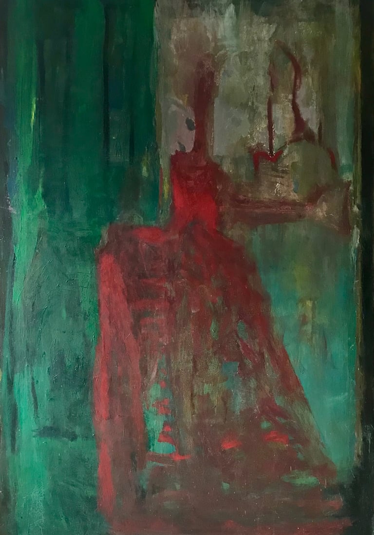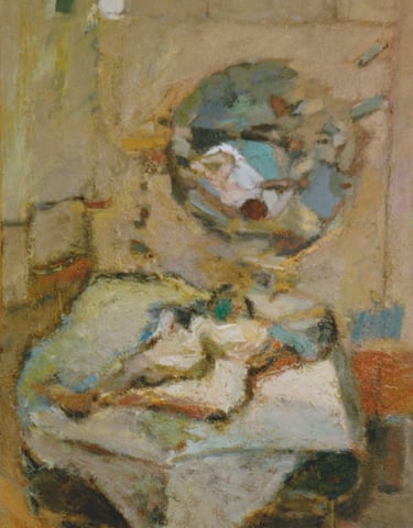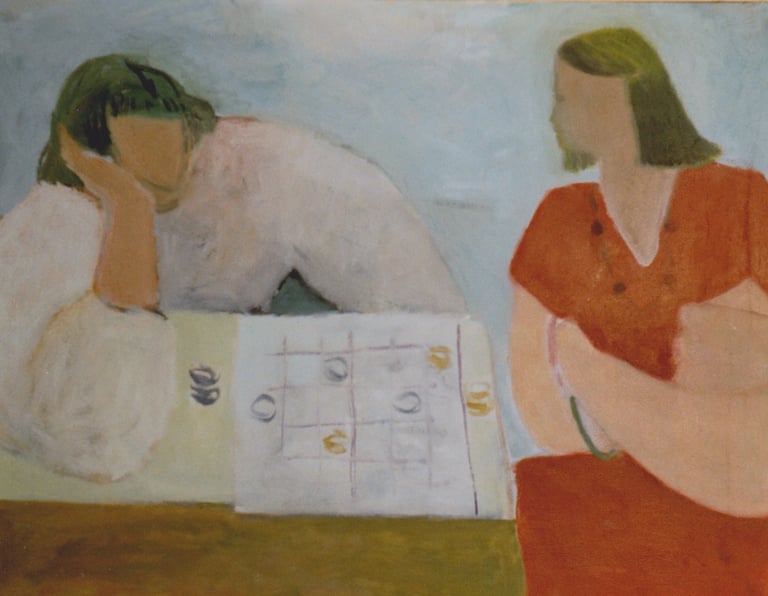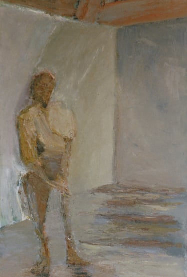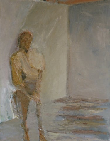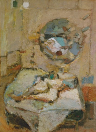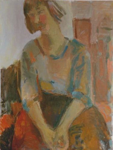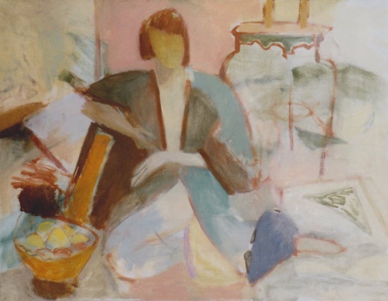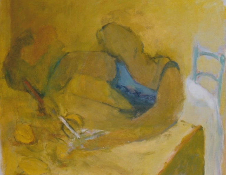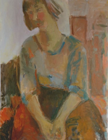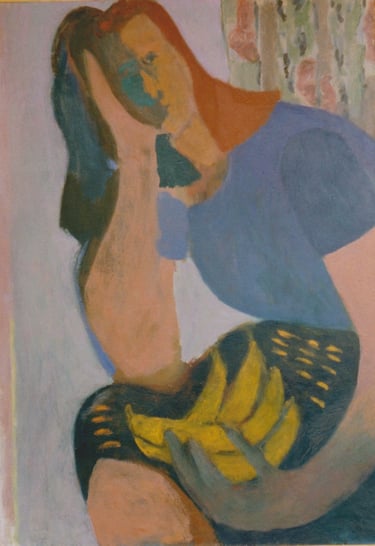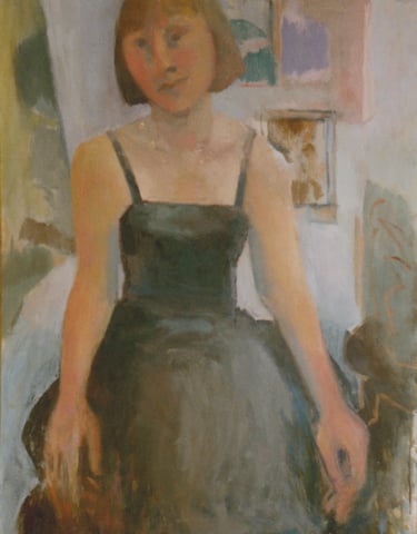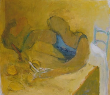 Row 1: Zachary Asleep with Kitten, 40 x 56 cm (NFS). Row 2: Seated Man, 120 x 90 cm (SOLD). Reclining Woman I, 50 x 90 cm (SOLD). Standing Woman, 120 x 90 cm (SOLD). Row 3: The Green Room I, 76 x 61 cm (SOLD). The Green Room II, 76 x 61 cm (SOLD). Standing Figure, 76 x 61 cm (SOLD). Reclining Figure II. 76 x 61 cm. Row 4: Reflected Interior, 76 x 61 cm (SOLD). Morning Tea, 76 x 61 cm (SOLD). Woman with Fan, 76 x 61 cm. Interior with Figure, 90 x 90 cm. Row 5: Stalemate, 90 x 120 cm (SOLD). Naples Yellow Interior, 90 x 120 cm. Lemony Summer, 90 x 120 cm (SOLD). Row 6: Black Dress I, 120 x 90 cm (SOLD). The Flowered Hat, 120 x 90 cm (SOLD). Woman in White, 120 x 90 cm (SOLD). Seated Woman, 120 x 90 cm (SOLD). Row 7: T.D. with Bananas, 120 x 90 cm (SOLD). T.D. with Looking Glass, 120 x 90 cm (SOLD). Row 8: The Meeting, 153 x 122 cm. Black Dress III, 127 x 102 cm. Having Cats, Feeding Birds, 153 x 122 cm (SOLD).